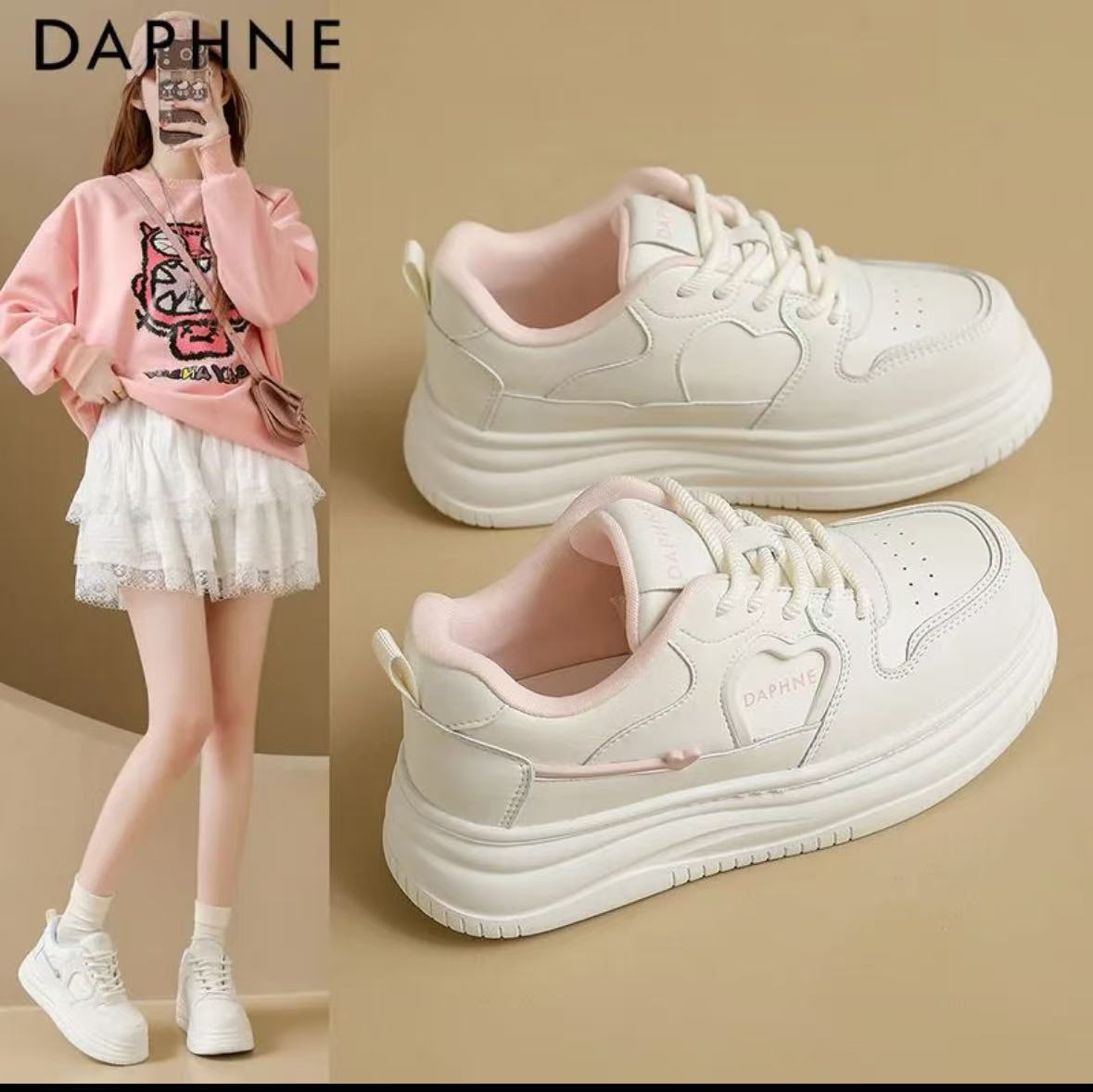 达芙妮厚底小白鞋女鞋子2026春季新款女学生增高百搭运动休闲板鞋