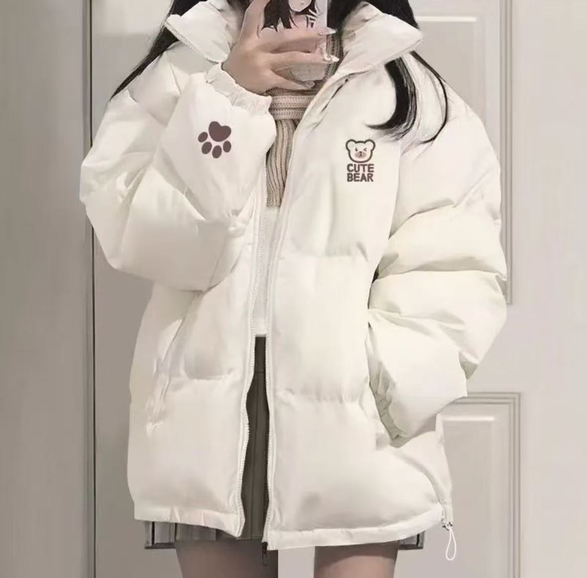 冬季棉服加厚保暖美式高街女新款可爱熊设计小众百搭棉衣立领外套
