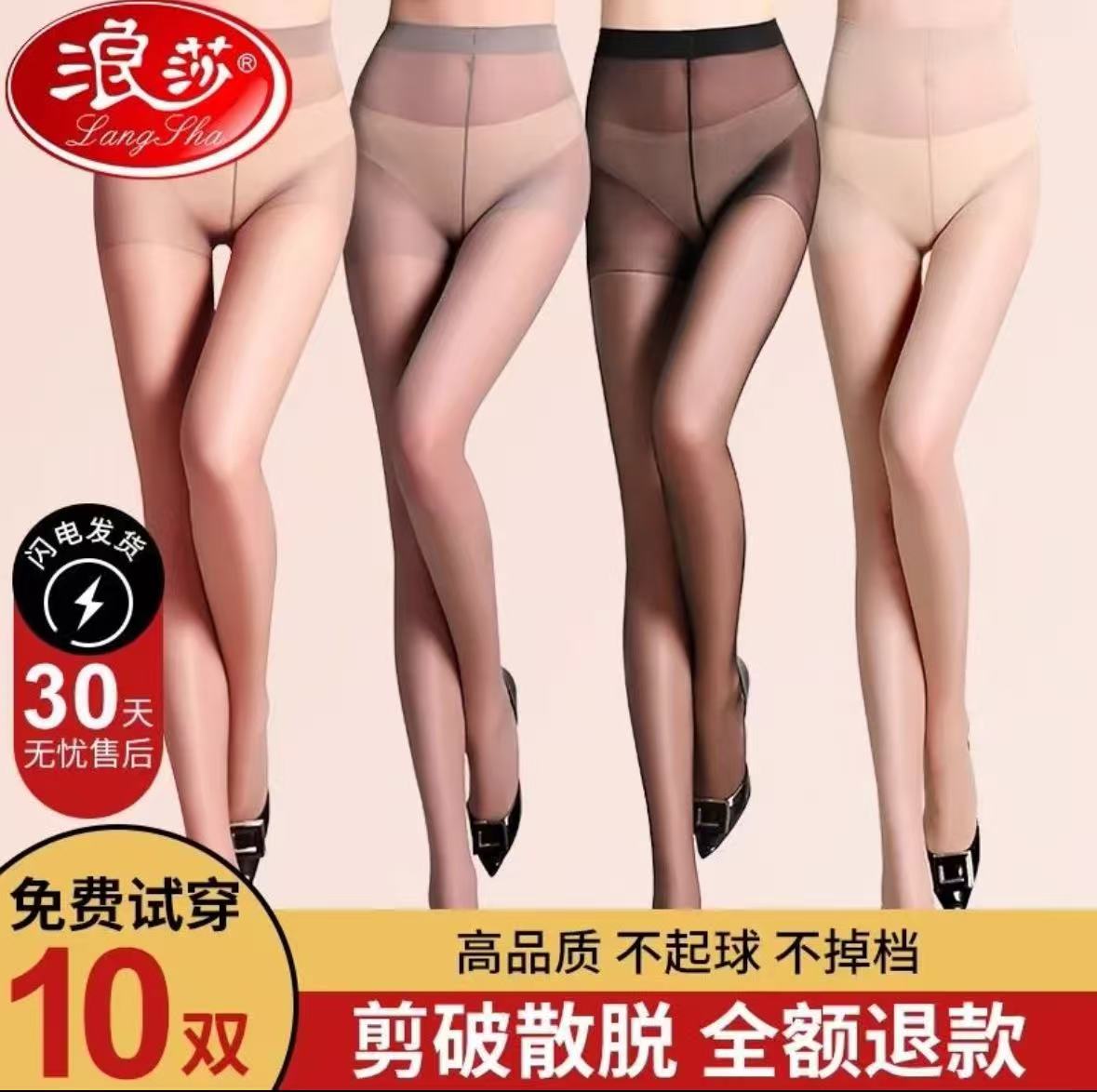 浪莎丝袜女肉色春秋超薄款防勾丝菠萝袜黑丝大码防掉档长筒连裤袜