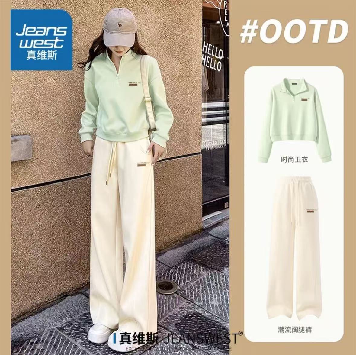 真维斯休闲运动套装女2026新款早春初中生短款卫衣阔腿裤子两件套